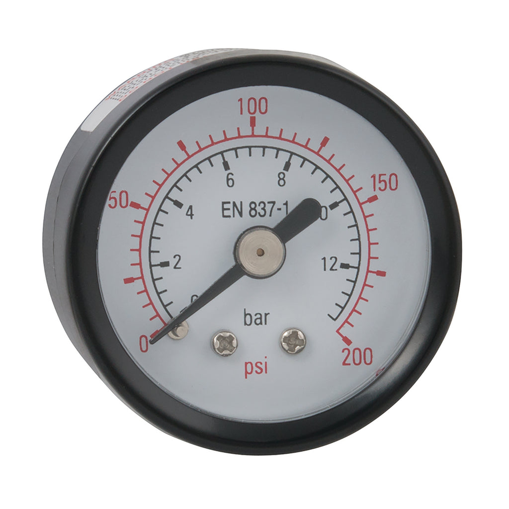 1/8" BSP Tapered Male, Steel Case, Centre Back Connection, 40mm Diameter, Dry Gauge, 40mm Dial Diameter, Working Pressure 0-100 psi, Working Pressure 0-6 bar, FT Pro