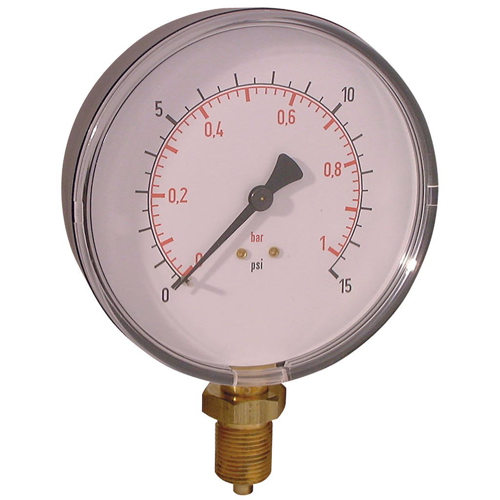 3/8" BSP Parallel Male, ABS Case, Bottom Connection, 100mm Diameter, Dry Gauge, 100mm Dial, Working Pressure 0-11 bar, Wika