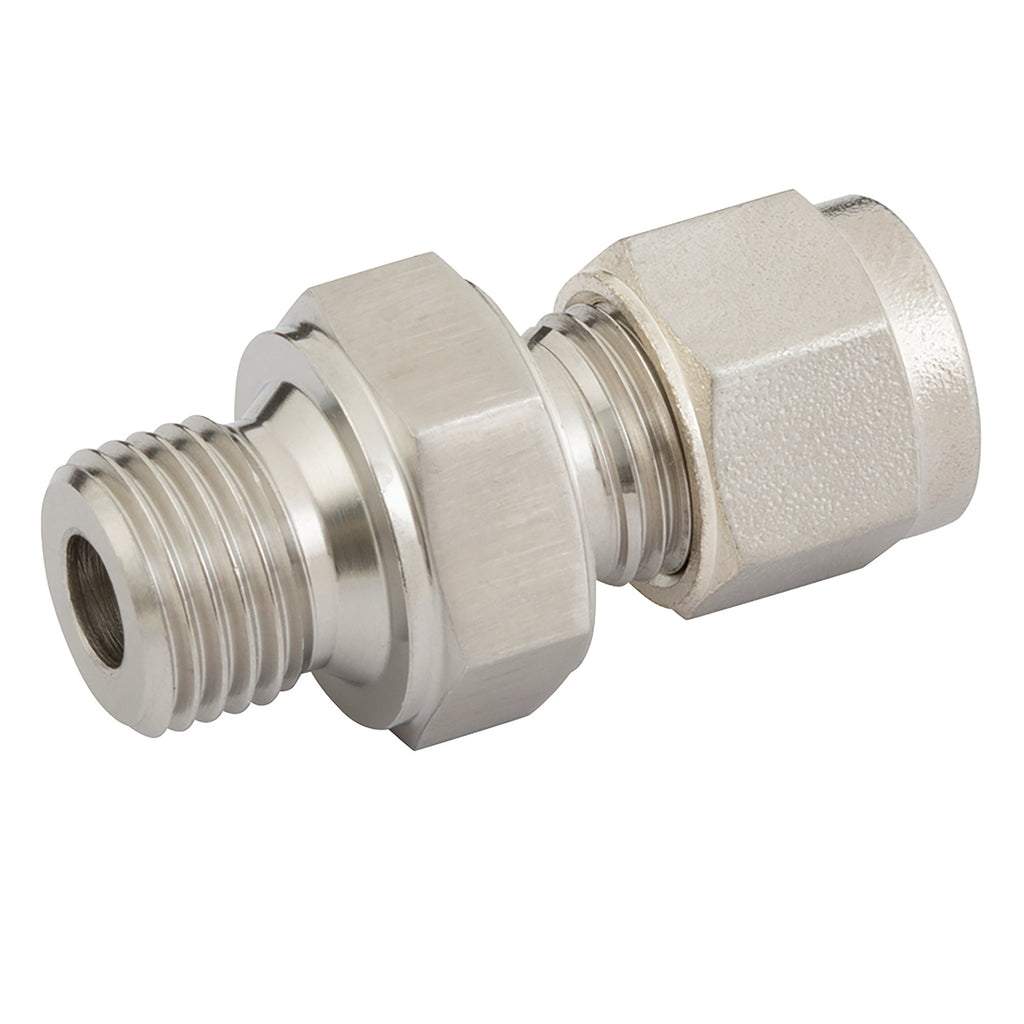 1/4" BSP Parallel Male x 6mm Outside Diameter, Hydraulic Twin Ferrule Metric Compression Fitting, Stud Coupling, (RS), 316 Stainless Steel, Panam