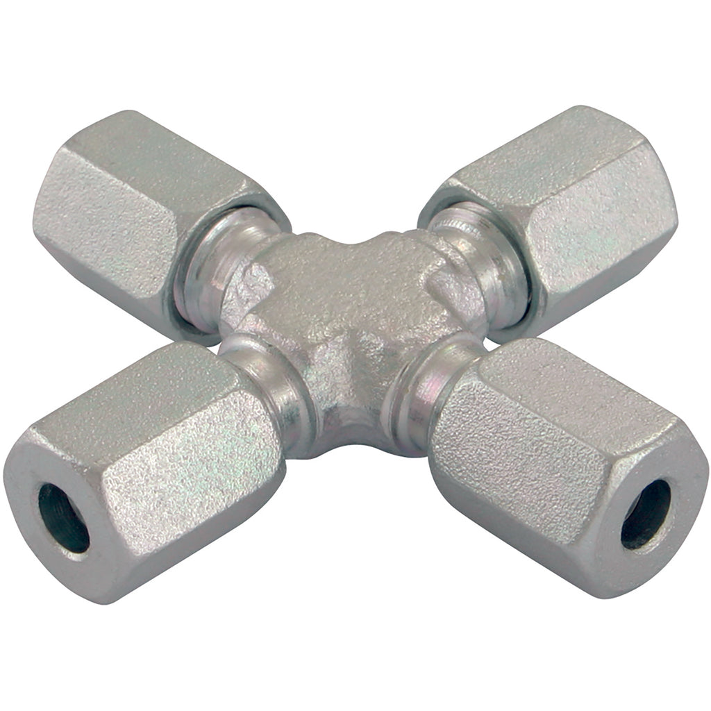 6mm Outside Diameter, Hydraulic DIN 2353 Compression Fitting, Light Duty, Cross, Chromium Plated Steel, Maximum Working Pressure 500 bar, Danfoss Waltech