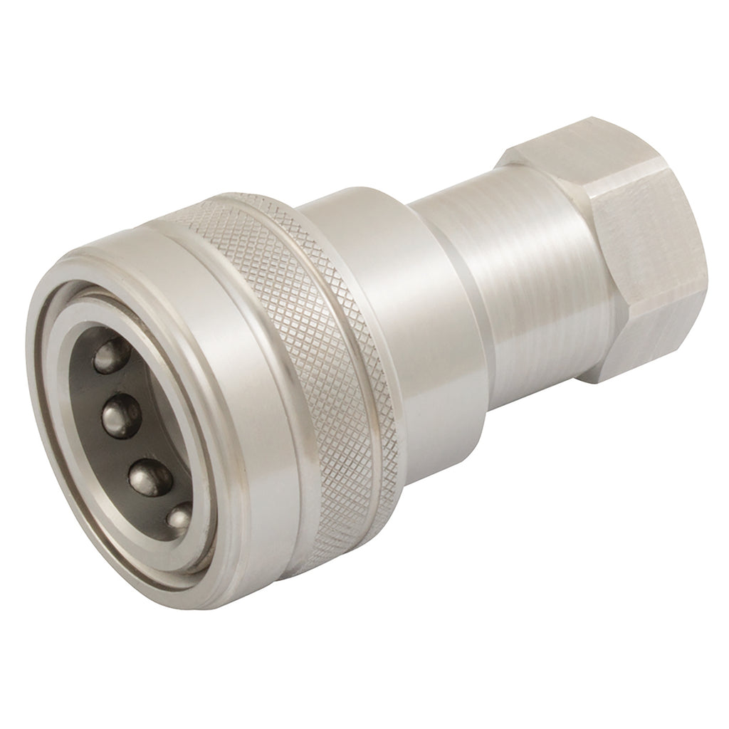 1.1/2" BSP Parallel Female, Valved, Hydraulic Quick Release, Coupling, ISO B Profile, PBVX Series, 316 Stainless Steel, Viton Seal, Working Temperature -25°C to +200°C, Maximum Working Pressure 80 bar, dnp