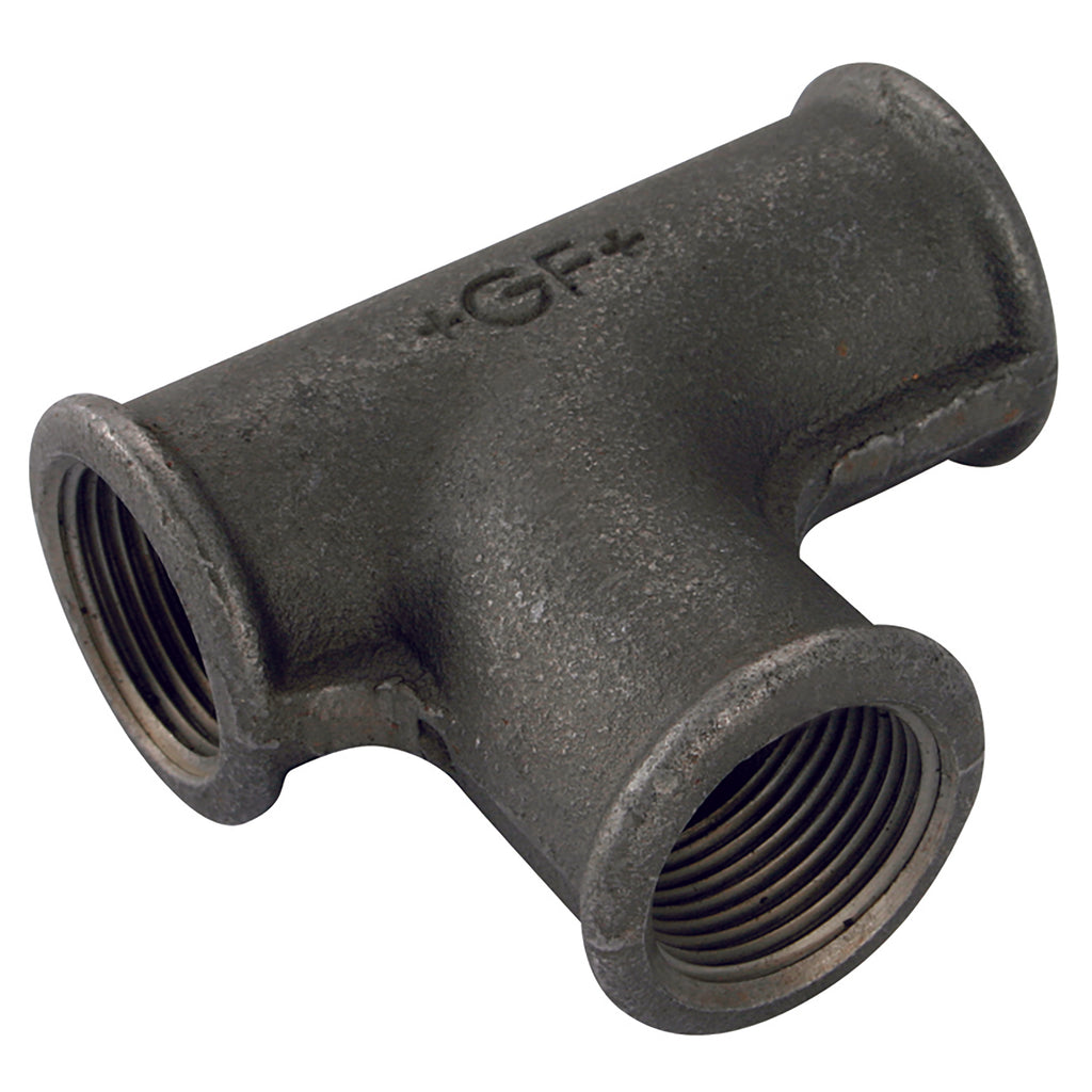 1.1/2" BSP Parallel Female, Malleable Iron Pipe Fitting, Black, Equal Pitcher Tee, Fig. 131, Working Temperature -20°C up to +120°C, Maximum Working Pressure 25 bar, GF