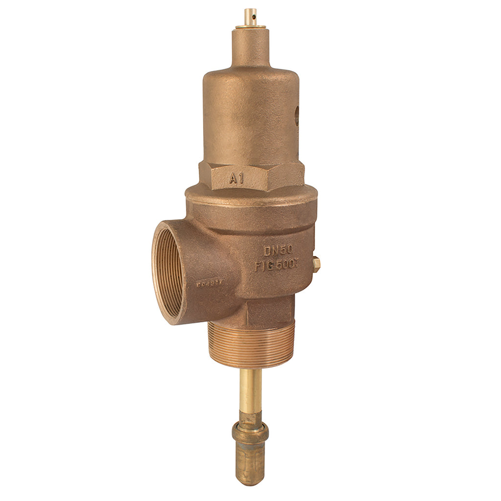 1.1/2" BSP Tapered Female, Combined Pressure & Temperature Relief Valve (Fig 500), Safety, DN 32, Gunmetal, Maximum Working Temperature +75°C, Set Pressure 3 bar, Nabic