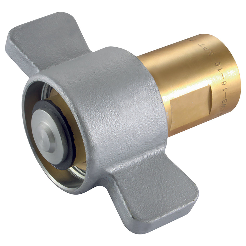 1.1/2" NPT Female, Valved, Hydraulic Quick Release, Plug, Screw-on Wing Nut, 98 Series, Brass, Nitrile Seal, Working Temperature -25°C to +120°C, Maximum Working Pressure 175 bar, FT Pro