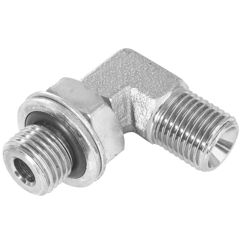 1.1/4" BSP Parallel Male x 1.1/4" BSP Parallel Male, Hydraulic Adaptor Steel, 60° Cone x Male Positionable, Forged, 90° Elbow, Zinc Plated Mild Steel, Maximum Working Pressure 170 bar, Burnett & Hillman