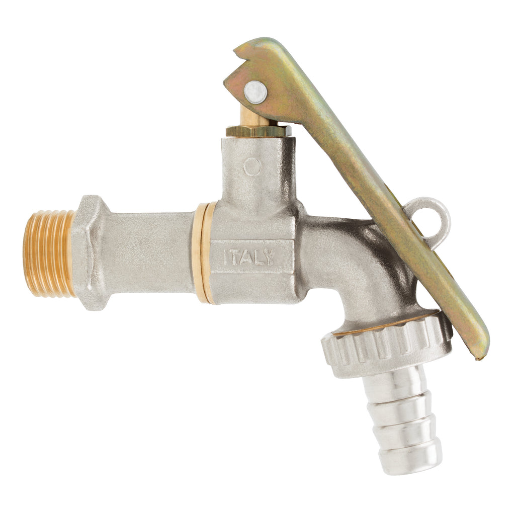 1/2" BSP Parallel Male, With a Lockpad Eye & Brass Connection, Bibcock, Ball Valve, To Suit Hose Inside Diameter 13mm, Working Temperature -20°C to +80°C, Maximum Working Pressure 14 bar, ITAP
