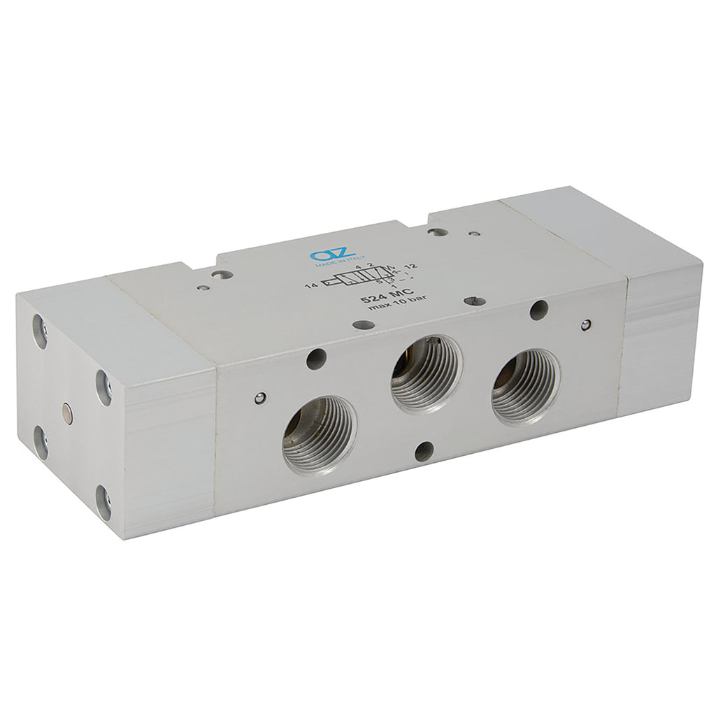 1/2" BSP Parallel Female, 5/2, Pilot/Spring, Pilot Valve, Working Temperature 0°C to +60°C, Maximum Working Pressure 10 bar, AZ Pneumatica
