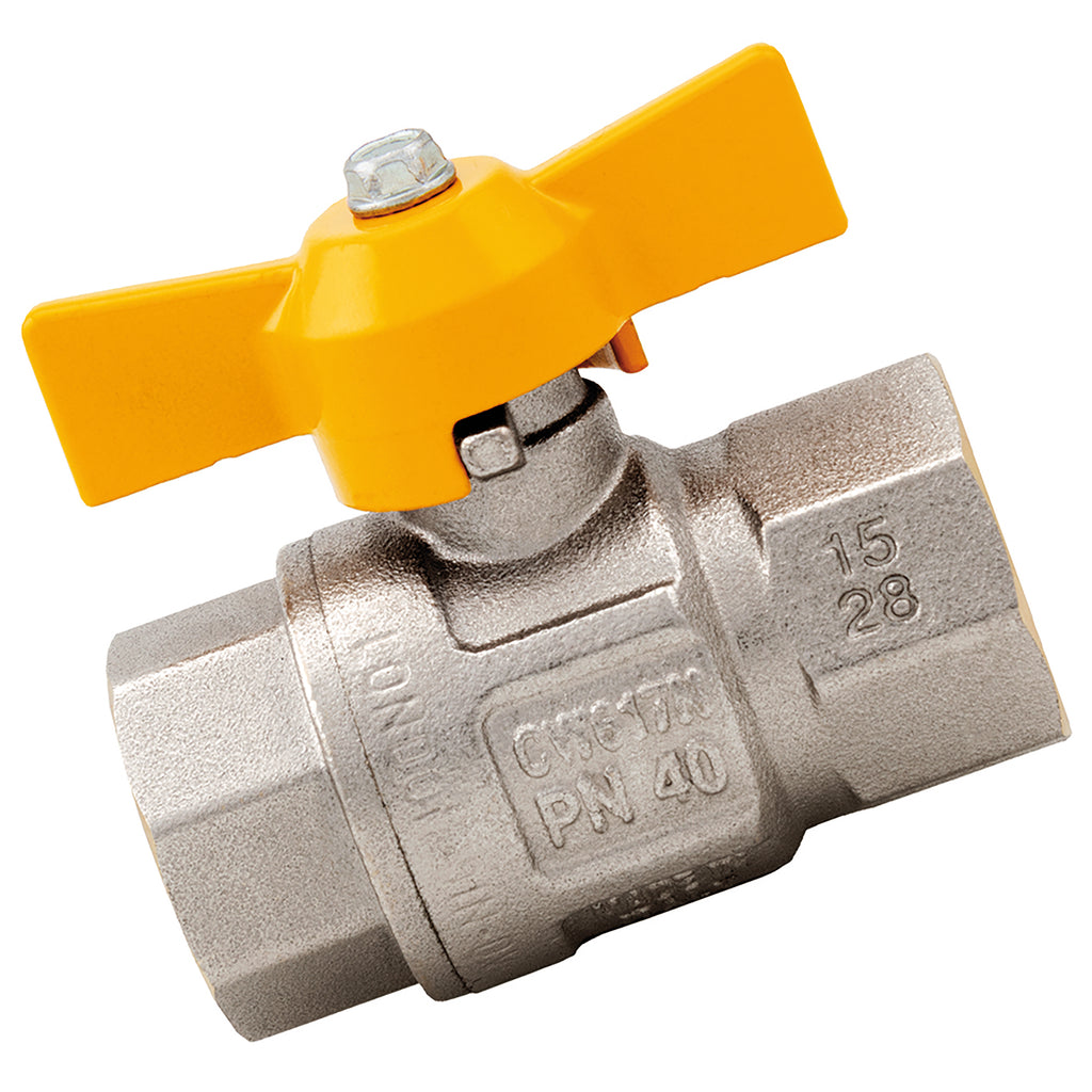1/2" BSP Parallel Female x 1/2" BSP Parallel Female, With Wing Handle, Full Bore Gas Ball Valves, Type 068 Compact, Nickel Plated Brass, EN331 Approved, Working Temperature -20°C to +60°C, Maximum Working Pressure 5 bar, ITAP