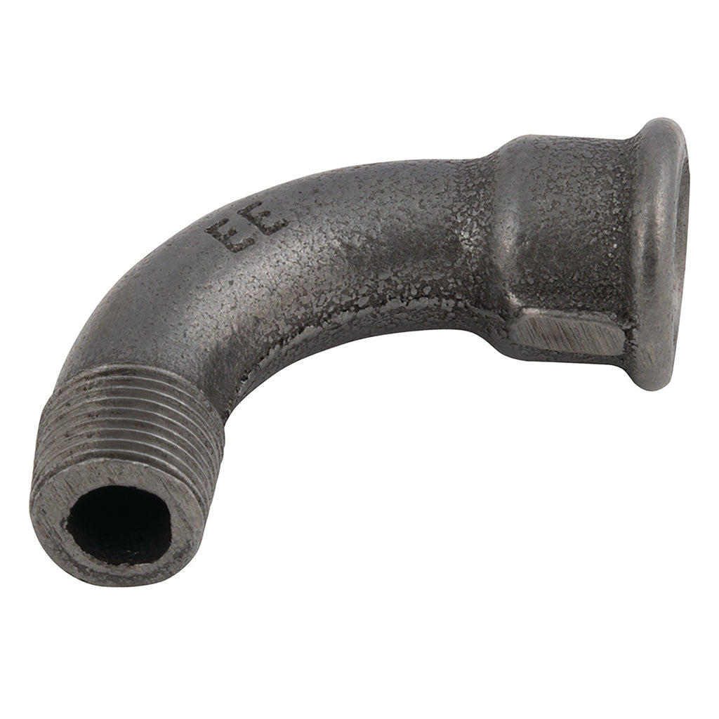 1/2" BSP Tapered Male x 1/2" BSP Parallel Female, Malleable Iron Pipe Fitting, Black, Equal 90° Bend, Fig. 1, Working Temperature -20°C to +120°C, Maximum Working Pressure 25 bar, EE