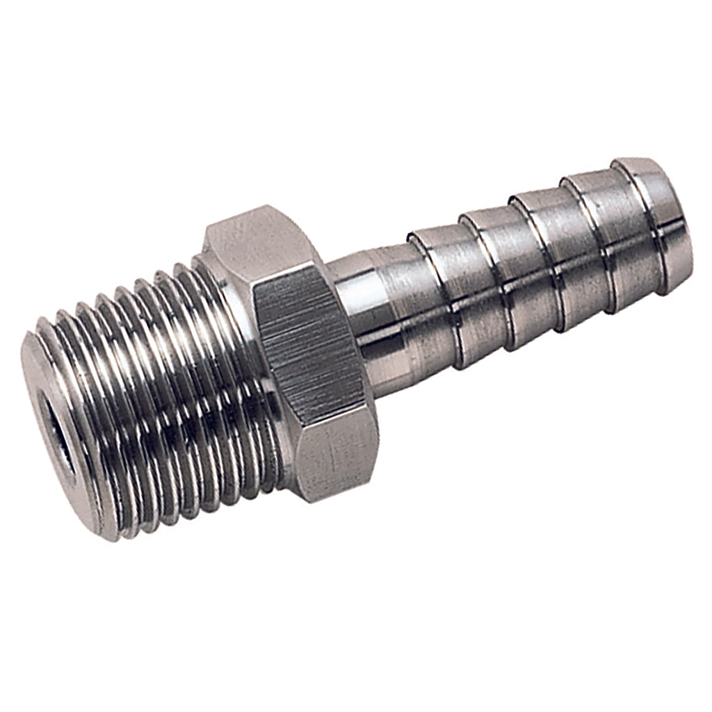 1/2" BSP Tapered Male, 150lb Tube & Pipe Fitting, BSP Tapered x Hose Tail, Straight, To Suit Hose Inside Diameter 3/4"(19mm), 316 Stainless Steel, Working Temperature -20°C to +260°C, Maximum Pressure 10 bar, Haitima