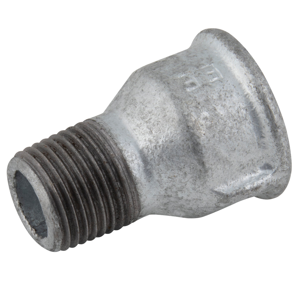 1/2" BSP Tapered Male x 1/2" BSP Parallel Female, Malleable Iron Pipe Fitting, Galvanised, Equal Socket, Fig. 529A, Working Temperature -20°C to +120°C, Maximum Working Pressure 25 bar, EE
