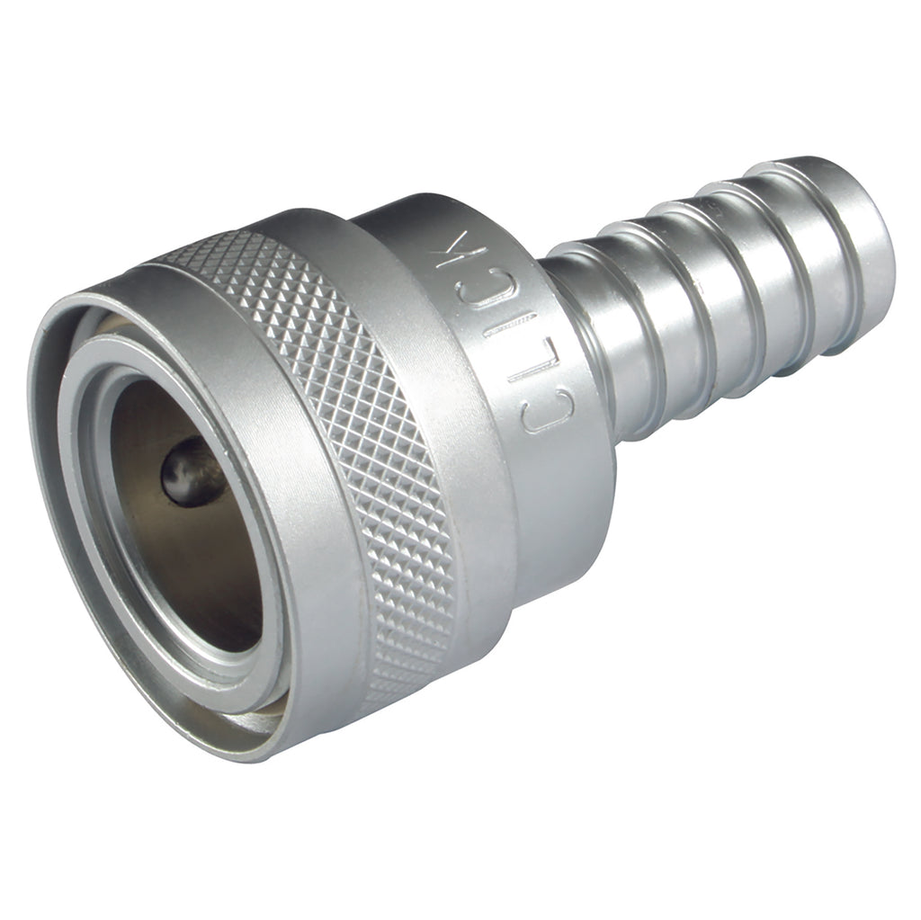 Hose Tail Coupling, Click System, To Suit 1/2" Hose Inside Diameter, Valved, Maximum Temperature -30°C to +80°C, Maximum Pressure 25, Nito