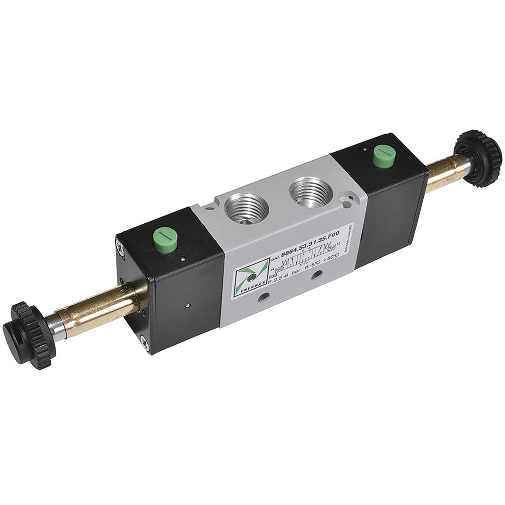 1/4" BSP Parallel Female, 5/3 Closed Centre Function, Solenoid/Solenoid Actuation, Solenoid Valve, Aluminium, Working Temperature -5°C to +50°C, Maximum Working Pressure 8 bar, Pneumax