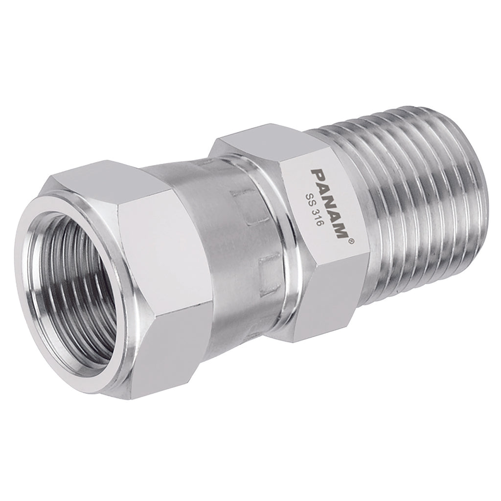 1/4" NPT Male x 7/16"-20 UNF Female, 37° JIC Flare Fitting, Straight, Swivel Female, Stainless Steel, Panam