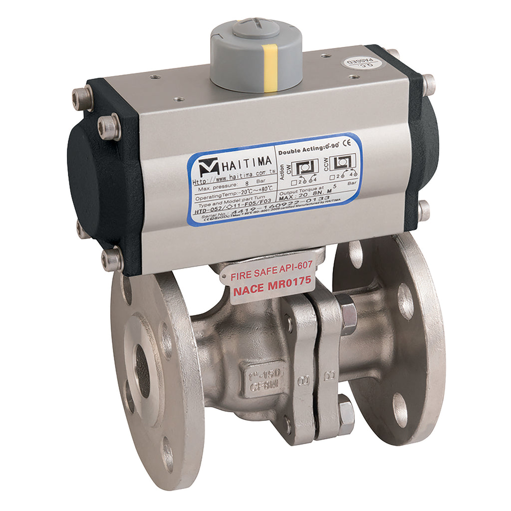 1" ANSI150 Flange, 2 Way Ball Valve Fitted with a Pneumatic Actuator, Single Acting, ATEX, Fire Safe Approved, Stainless Steel Valve Material, Viton Seal Material, Valve Working Temperature -20?©°C to +230?©°C, Actuator Working Temperature -20?©°C to +90?©°C, Valve Maximum Working Pressure 19.6 bar, Haitima