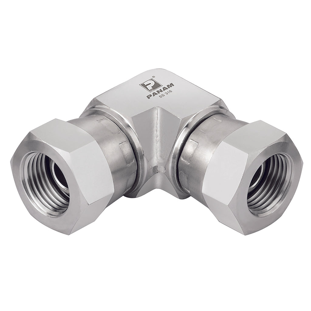 1" BSP Parallel Female x 1" BSP Parallel Female, 10,000 psi Rated Steel Adaptor, Swivel Female, 90° Elbow, 316 Stainless Steel, Maximum Working Pressure 690 bar, Panam