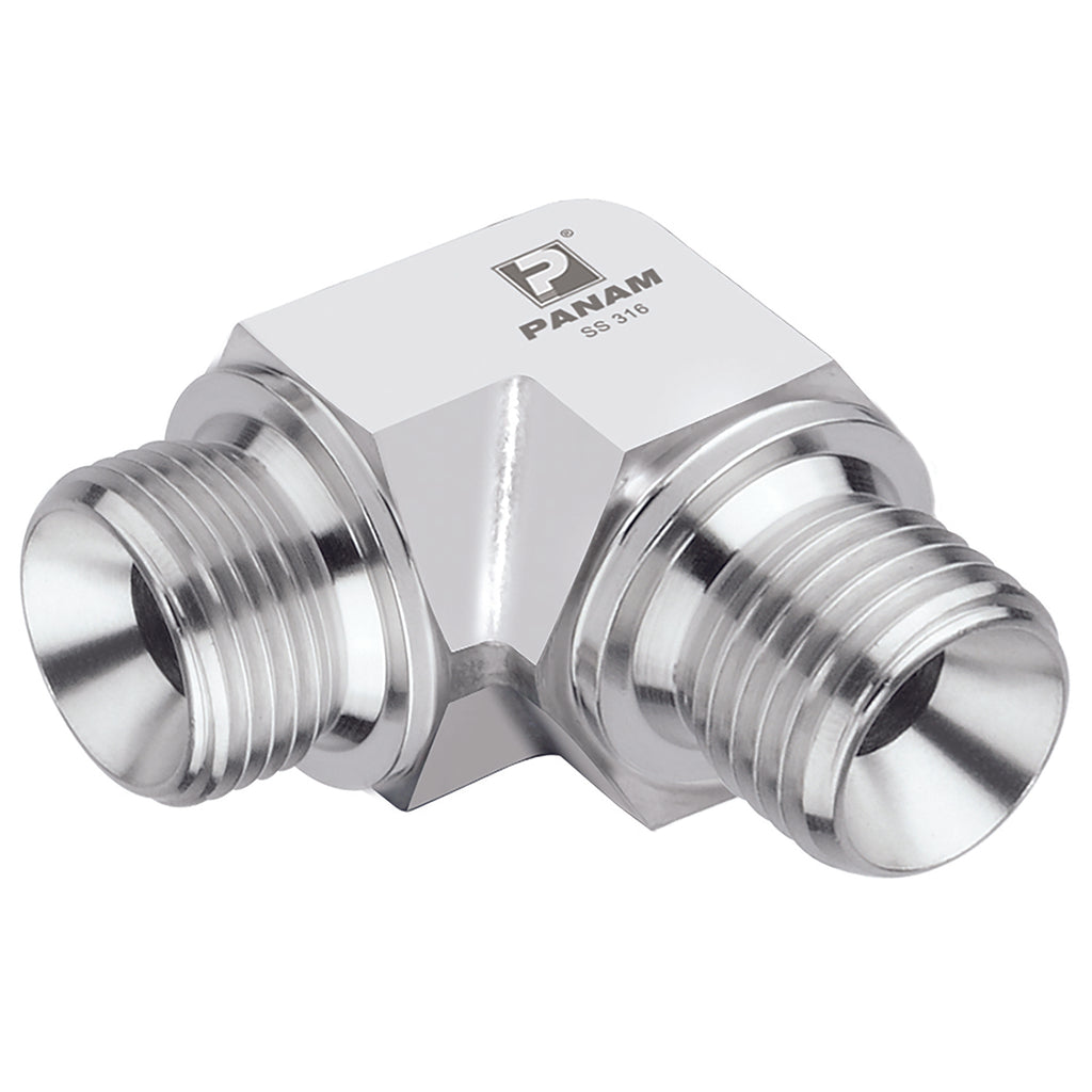 1" BSP Parallel Male x 1" BSP Parallel Male, 10,000 psi Rated Steel Adaptor, 90° Elbow, 316 Stainless Steel, Maximum Working Pressure 690 bar, Panam