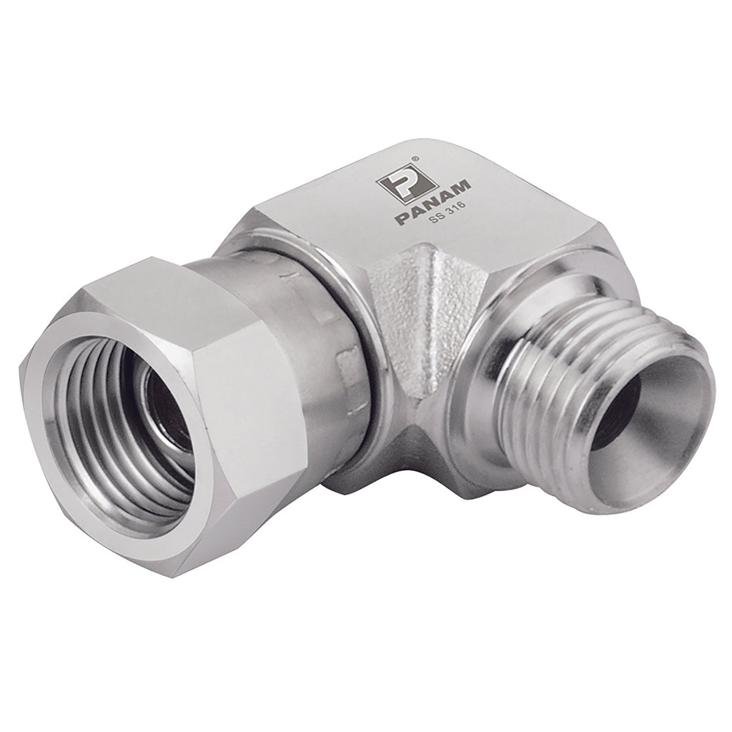 1" BSP Parallel Male x 1" BSP Parallel Female, Hydraulic Adaptor, Swivel Female, 90° Elbow, Stainless Steel, Panam