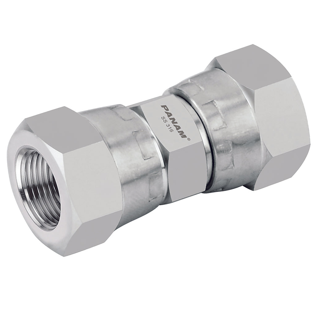 1" BSP Parallel Female x 1" BSP Parallel Female, 10,000 psi Rated Steel Adaptor, Swivel, 316 Stainless Steel, Maximum Working Pressure 690 bar, Panam