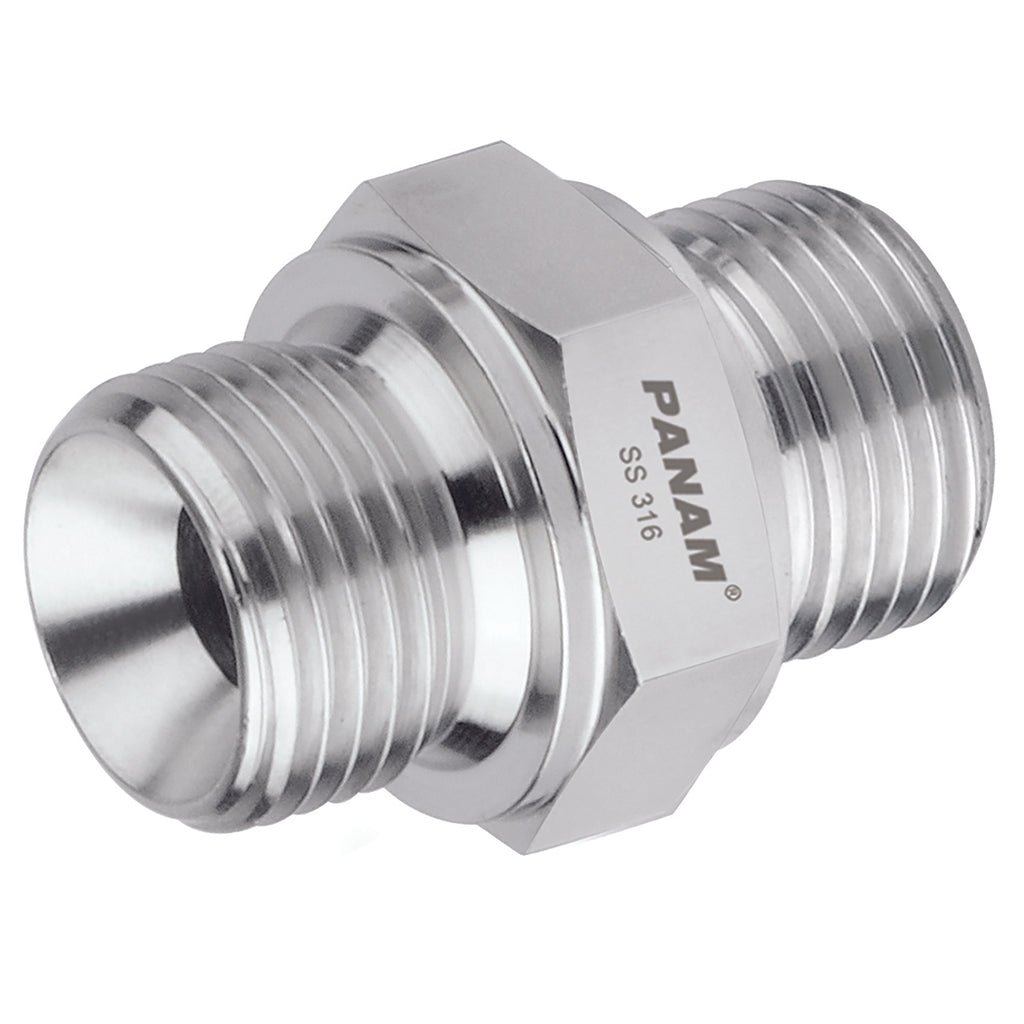 1" BSP Parallel Male x 1" BSP Parallel Male, 10,000 psi Rated Steel Adaptor, 316 Stainless Steel, Maximum Working Pressure 690 bar, Panam