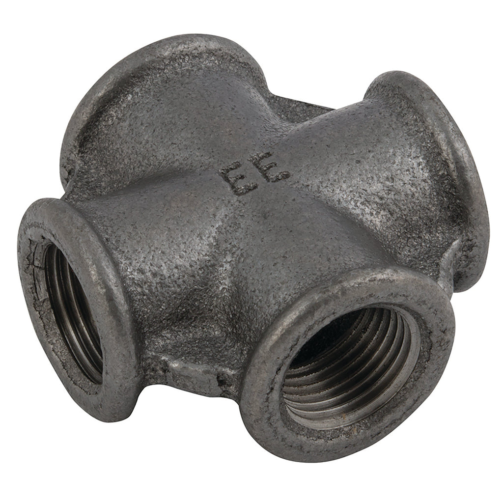 1" BSP Parallel Female, Malleable Iron Pipe Fitting, Black, Equal Cross, Fig. 180, Working Temperature -20°C to +120°C, Maximum Working Pressure 25 bar, EE