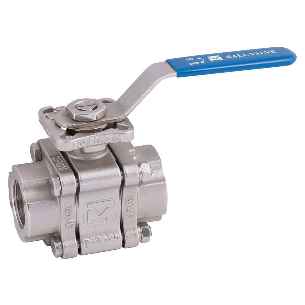 1" BSP Parallel, 3 Piece, Direct Mount Reduced Bore Ball Valve, ATEX, Fire Safe, NACE MR0175 Approved, Stainless Steel, Viton Seal Material, CTFE Seat Material, Working Temperature -20°C to +220°C, Maximum Working Pressure 138 bar, Haitima