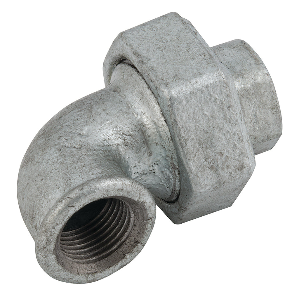 1" BSP Parallel Female, Malleable Iron Pipe Fitting, Galvanised, Union 90° Elbow Taper Seat, Fig. 96, Working Temperature -20°C to +120°C, Maximum Working Pressure 25 bar, EE