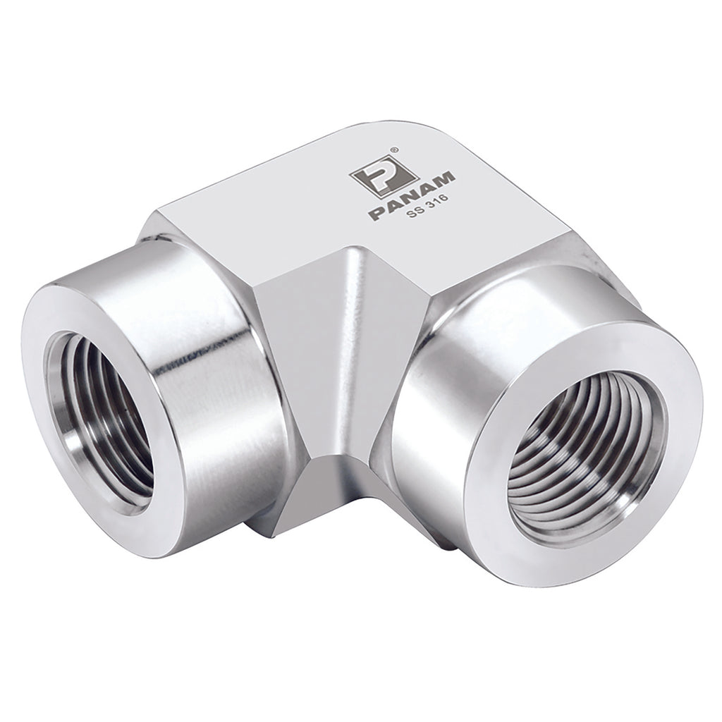1" NPT Female x 1" NPT Female, 10,000 psi Rated Steel Adaptor, 90° Elbow, 316 Stainless Steel, Maximum Working Pressure 690 bar, Panam