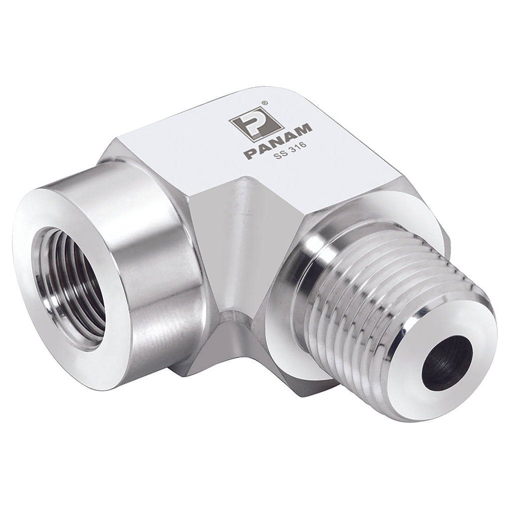 1" NPT Male x 1" NPT Female, 10,000 psi Rated Steel Adaptor, 90° Elbow, 316 Stainless Steel, Maximum Working Pressure 690 bar, Panam