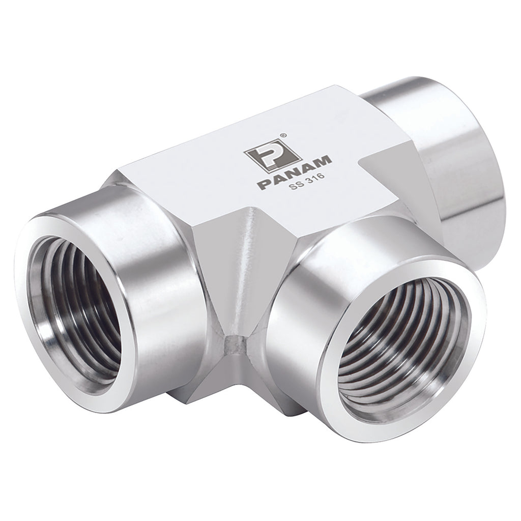 1" NPT Female, Instrumentation Pipe Fitting, Tee, Stainless Steel, Panam