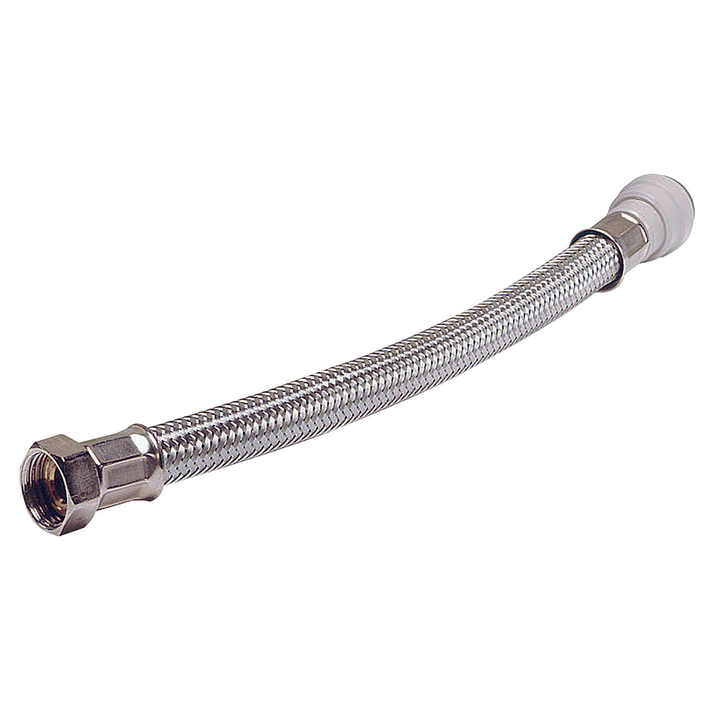 1/2" BSP Parallel Female x 15mm Outside Diameter, Plastic Plumbing Push-in Fitting, Flexi Hose, Length 300mm, John Guest Speedfit