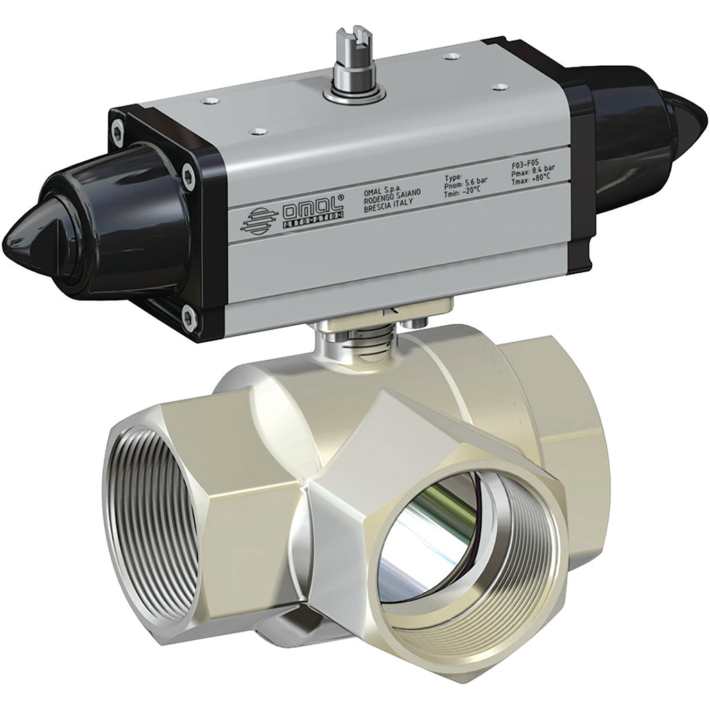 2" BSP Parallel Female, Single Acting, Brass Ball Valve, 3 Way L Port Pneumatic Actuation, Low Pressure, Working Temperature, Actuator -20?é° to +80?é°C(Dry Air), Valve -20?é°C to +150?é°C, Omal