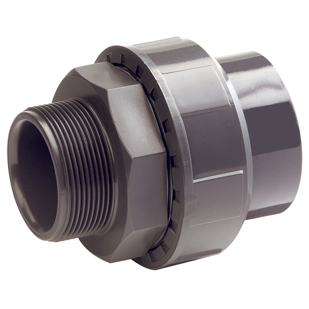 2" BSP Parallel Male x 1.1/2" Nominal Bore, UPVC Imperial Pipe System, Union, Working Temperature 0?é°C to +60?é°C, Maximum Working Pressure 15 bar, Comer