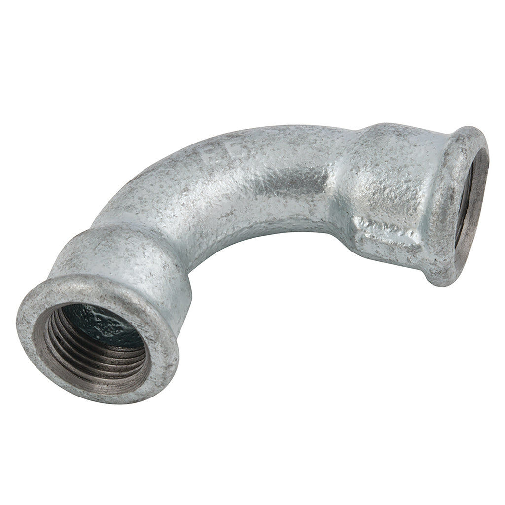 3/4" BSP Parallel Female, Malleable Iron Pipe Fitting, Galvanised, Equal 90° Bend, Fig. 2, Working Temperature -20°C to +120°C, Maximum Working Pressure 25 bar, EE