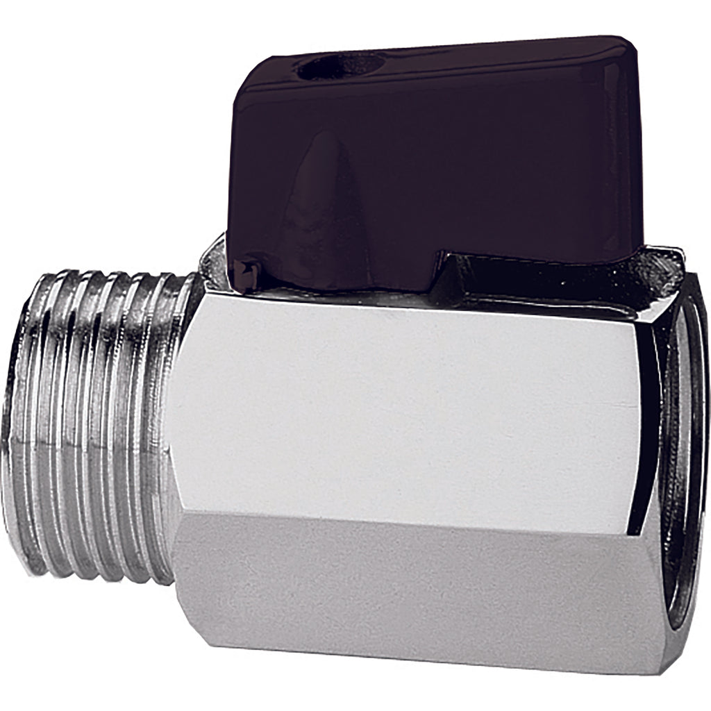 3/8" BSP Parallel x 3/8" BSP Parallel, Mini Ball Valve, Nickel Plated Brass, Working Temperature 0°C to +90°C, Maximum Working Pressure 15 bar, ITAP