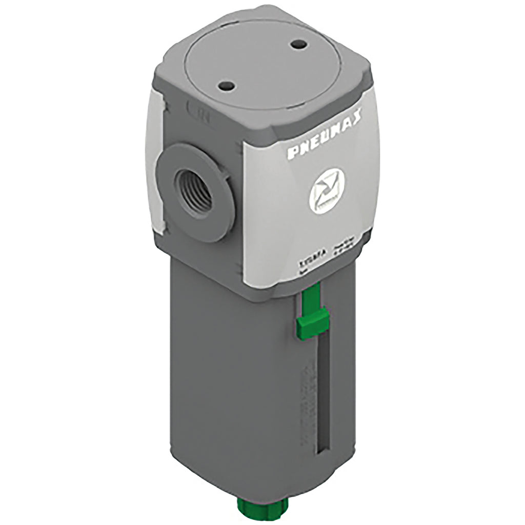 3/8" BSP Parallel Female, Air Preparation, Filter, Airplus Series, Semi Auto Drain, 20 Micron, Working Temperature -5?é?¼?ó?å?¥C to +50?é?¼?ó?å?¥C, Maximum Working Pressure 13 bar, Pneumax