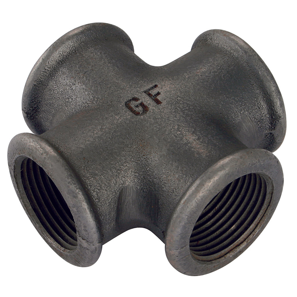4" BSP Parallel Female, Malleable Iron Pipe Fitting, Black, Equal Cross, Fig. 180, Working Temperature -20°C up to +120°C, Maximum Working Pressure 25 bar, GF