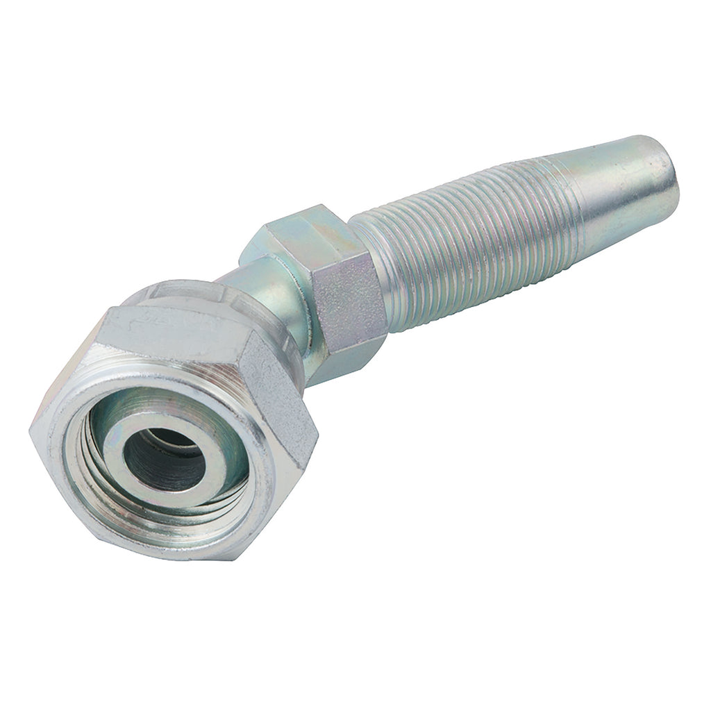 5/8" BSP Parallel Female x 12.7mm Hose Inside Diameter, Reusable Hose Fitting, 45° Elbow, Mild Steel, Danfoss Aeroquip