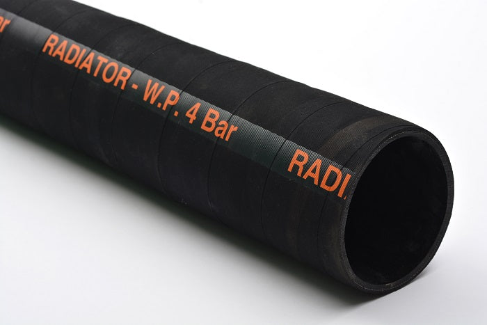 Tube: Black SBR (anti-freeze) resistant rubber. Reinforcement: Polyester type cord 2 ply Safety Factor: 3.1 Cover: Black SBR heat abrasion and weather resistant. Application: Vehicle randiator hose ethylene glycol (anti-freeze) resistant.