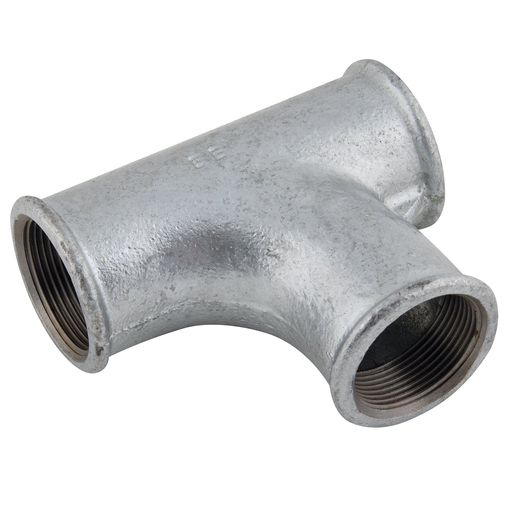 1" BSP Parallel Female, Malleable Iron Pipe Fitting, Galvanised, Equal Pitcher Tee, Fig. 131, Working Temperature -20°C to +120°C, Maximum Working Pressure 25 bar, EE