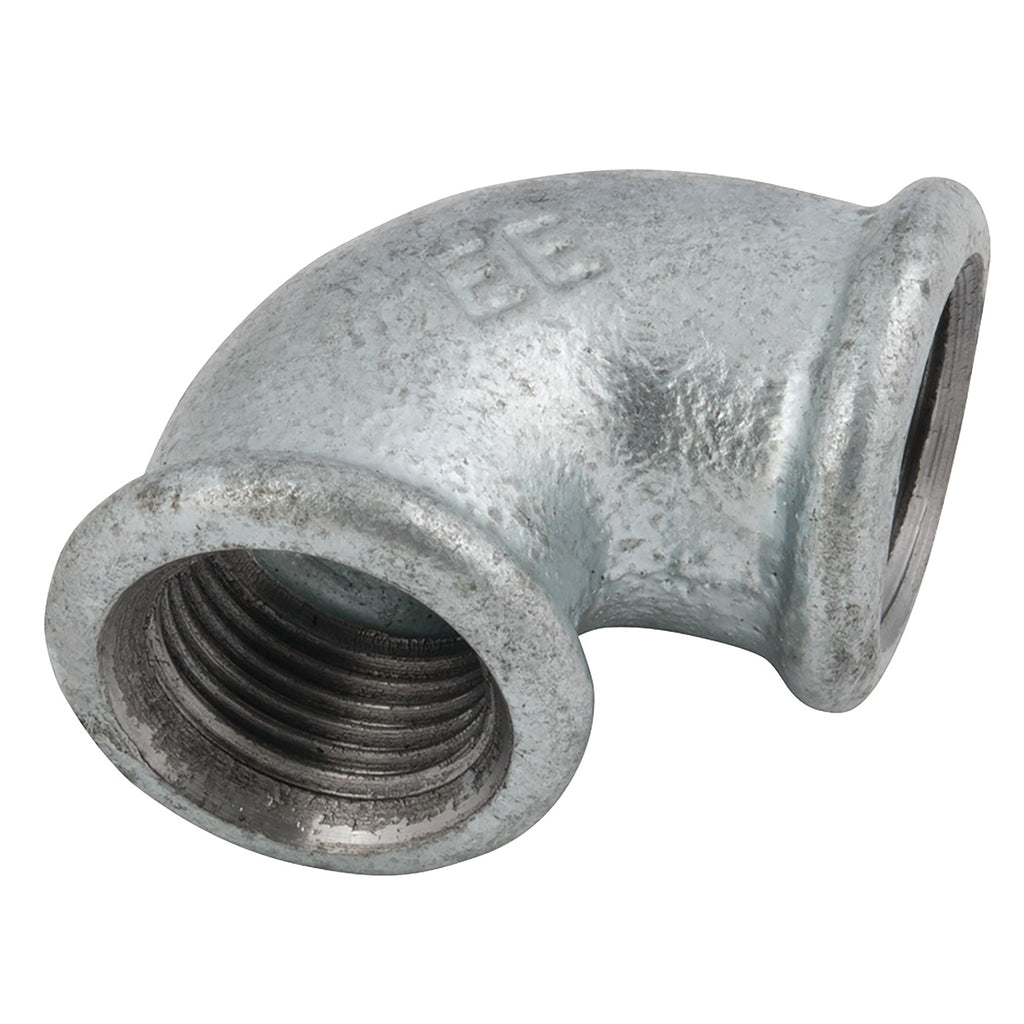 3/8" BSP Parallel Female, Malleable Iron Pipe Fitting, Galvanised, Equal 90° Elbow, Fig. 90, Working Temperature -20°C to +120°C, Maximum Working Pressure 25 bar, EE