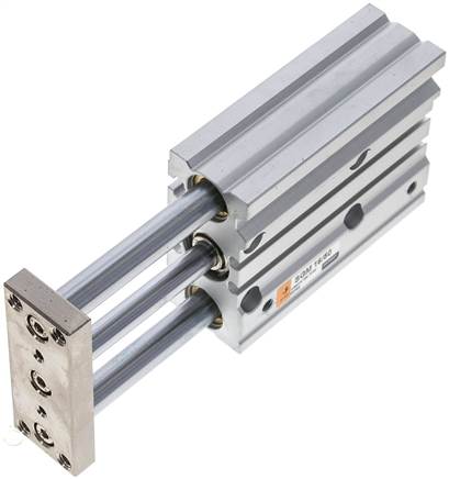 Materials:Body: Anodized aluminum, Plate: Steel, Guiding rods: Steel, hard chrome-plated, piston rod: Steel, hard chrome-plated, piston: Aluminum, Gaskets: NBR / PUR