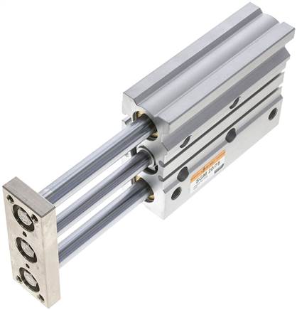 Materials:Body: Anodized aluminum, Plate: Steel, Guiding rods: Steel, hard chrome-plated, piston rod: Steel, hard chrome-plated, piston: Aluminum, Gaskets: NBR / PUR