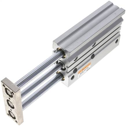 Materials:Body: Anodized aluminum, Plate: Steel, Guiding rods: Steel, hard chrome-plated, piston rod: Steel, hard chrome-plated, piston: Aluminum, Gaskets: NBR / PUR