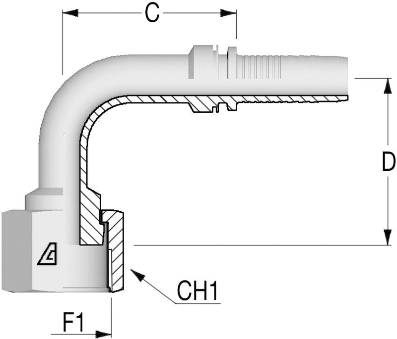 1.7/16" -12 ORFS 90deg Flat/Faced Female x 1 Hose