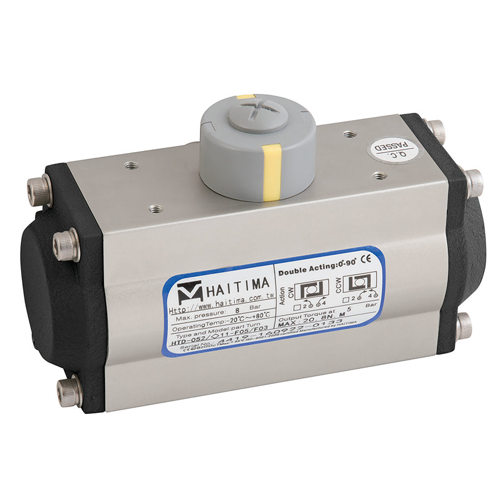Single Acting Actuator, 0-90?é° Rotation Angle, ATEX Approved, Hard Anodized Aluminium, 0.49 Litres per Minute Air Consumption Opening, 0.71 Litres per Minute Air Consumption Closing, 82.4 Torque Nm, Working Temperature -20?é°C to +90?é°C, Haitima