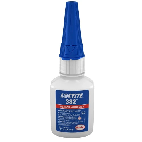 Loctite® 382 is a transparent, colourless, general purpose, instant adhesive gel with a fixture time of 20 - 40 secs.