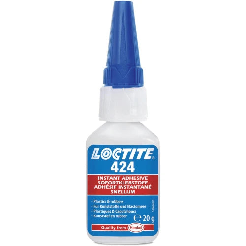 Loctite® 424 is a transparent, colourless, low viscosity, ethyl-based instant adhesive.