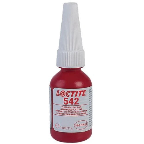 The product cures when confined in the absence of air between close-fitting metal surfaces and prevents loosening and leakage due to shock and vibration. The thixotropic nature of Loctite® 542 reduces the migration of liquid product after application to the part.Ideal for fine threads as used in hydraulic, pneumatic & general fittingsInstant low-pressure seal