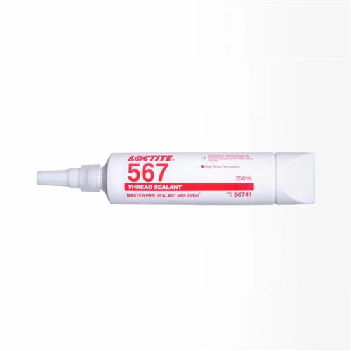 Loctite® 567 is an off-white, low strength, thixotropic methacrylate thread sealant. It cures in the absence of air and by contact with metals when confined within threads up to M80/R3€�.